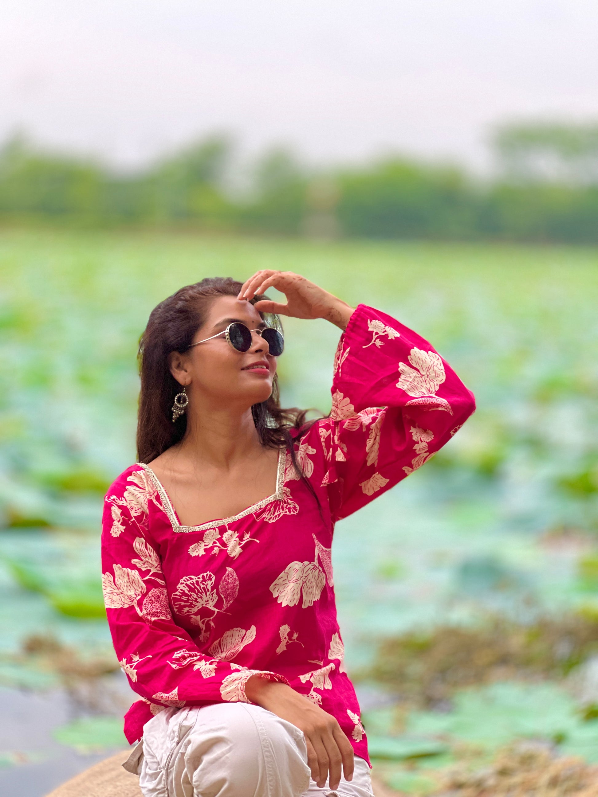 floral pink kurti